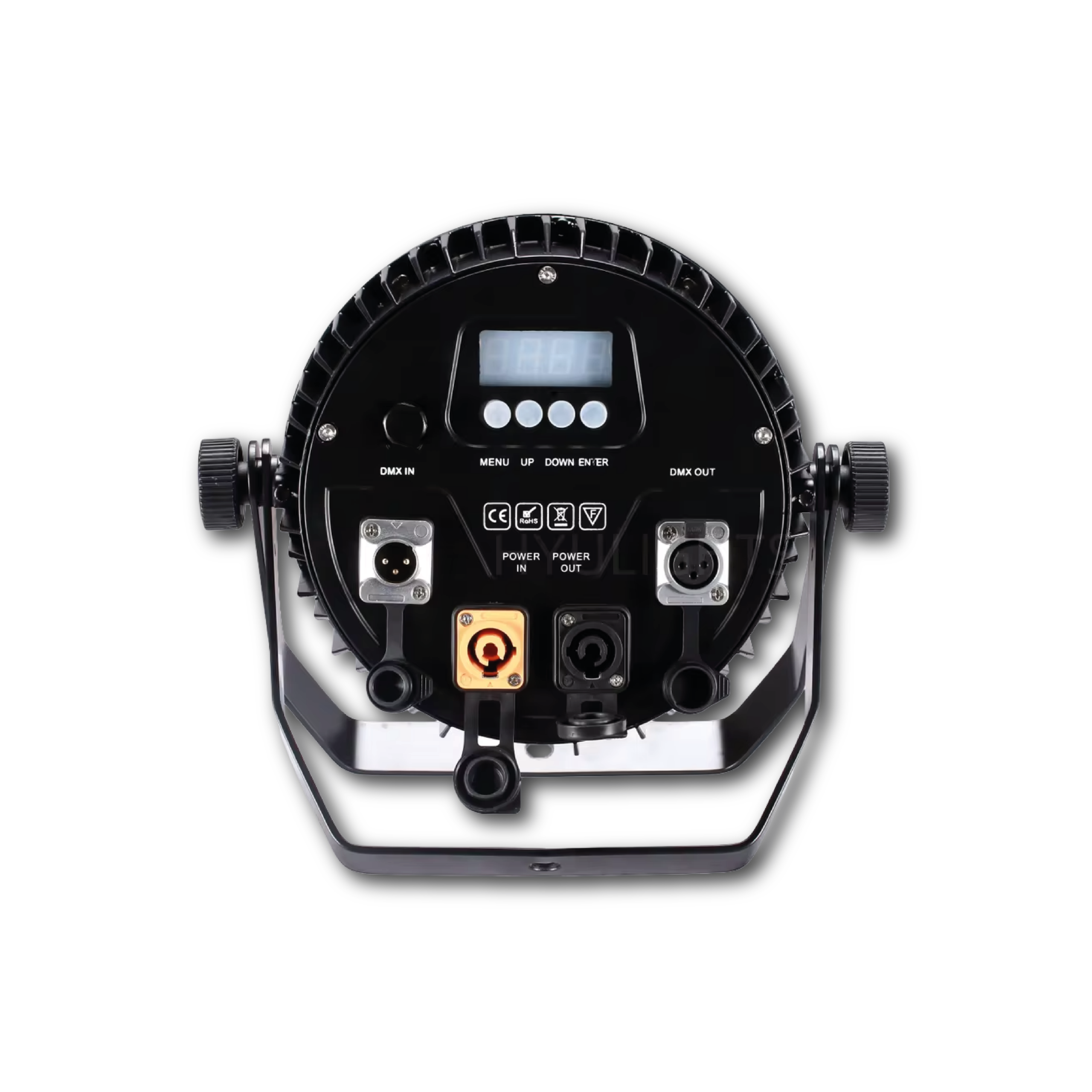 PAR LED IP65 18×18W RGBWA+UV 6in1 – Faro Wash Professionale 180W per Outdoor e Indoor Il PAR LED IP65 18×18W 6in1 è un faro wash professionale progettato per offrire prestazioni luminose elevate, colori intensi e una robustezza adatta anche agli ambienti più impegnativi. Grazie al suo corpo completamente stagno certificato IP65, questo proiettore è ideale sia per installazioni indoor che outdoor, resistendo senza problemi a pioggia, umidità, polvere e condizioni atmosferiche difficili. Dotato di 18 LED ad alta potenza da 18W RGBWA+UV, il faro garantisce una miscelazione cromatica ricca e uniforme, con un output luminoso potente e ben distribuito. L’ampio angolo di emissione da 40° assicura un wash pieno e morbido, ideale per illuminare strutture, eventi all’aperto, palchi, architetture e scenografie. Il dimmer lineare 0–100% consente una regolazione precisa e fluida della luminosità, mentre lo strobo 1–20 Hz permette di creare effetti dinamici e d’impatto. La presenza dei protocolli DMX512 e RDM garantisce un controllo avanzato e affidabile, anche su lunghe distanze, mentre il display digitale interno permette una gestione intuitiva dei parametri. Grazie al sistema di raffreddamento intelligente, il faro adatta automaticamente la potenza in caso di surriscaldamento, assicurando sempre sicurezza operativa e una lunga durata nel tempo.