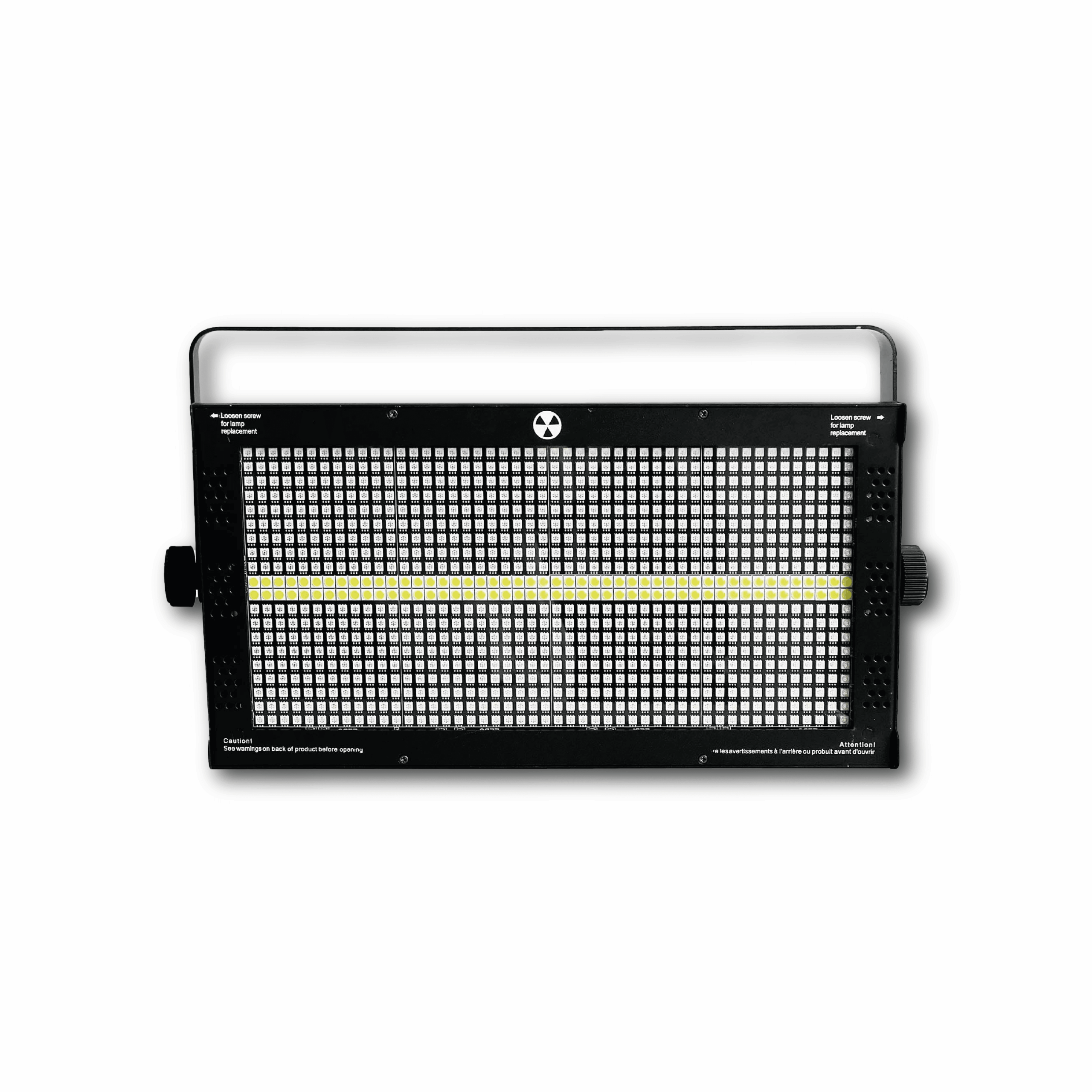 Strobo LED RGBW 1000W professionale ad altissima luminosità con 864 LED RGB + 96 LED bianchi da 2W, ideale per eventi live, festival e discoteche. Dotato di controllo pixel 16 sezioni (8+8), strobo fino a 30Hz, dimmer lineare 0–100% e ampio fascio a 180°. Supporta DMX512 con diverse modalità canale per massima flessibilità e integrazione in setup professionali. Perfetto per effetti dinamici, flash potenti e animazioni sceniche ad alto impatto.